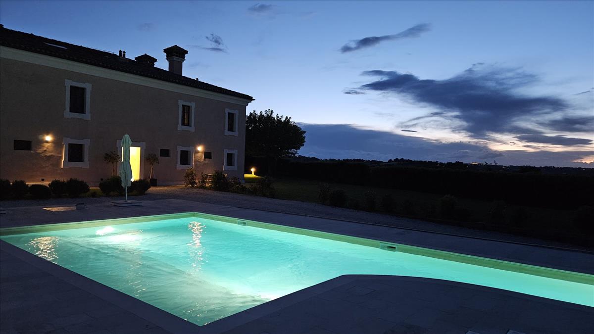 La propriété comprend une piscine panoramique avec un espace de détente, une pergola pour des moments conviviaux et des espaces dédiés à des événements et activités, notamment des dégustations de vin et d'huile, des ateliers culinaires, des séances de yoga et des observations astronomiques. Tout est accompagné de produits locaux pour une expérience qui allie tradition, nature et détente.